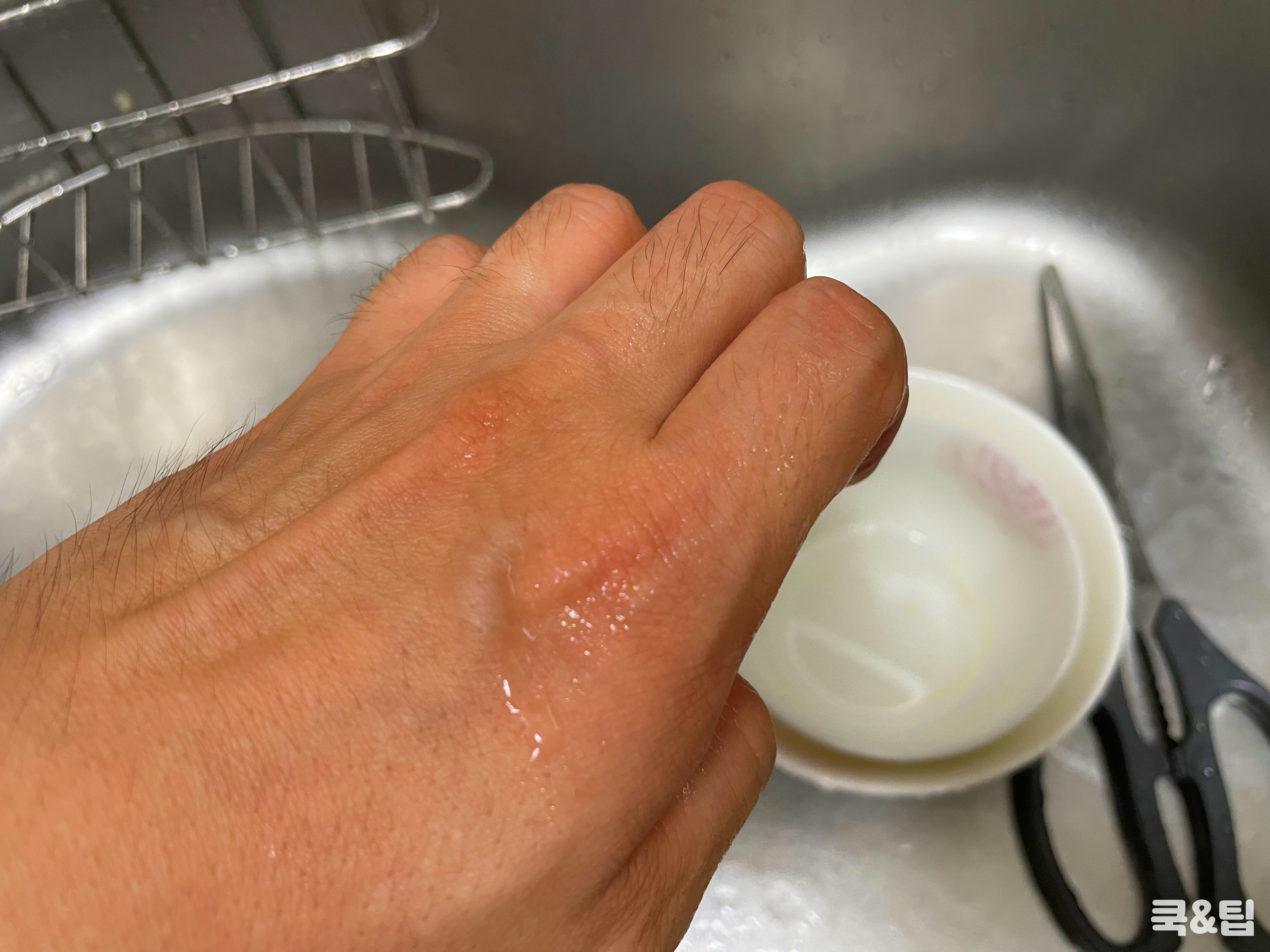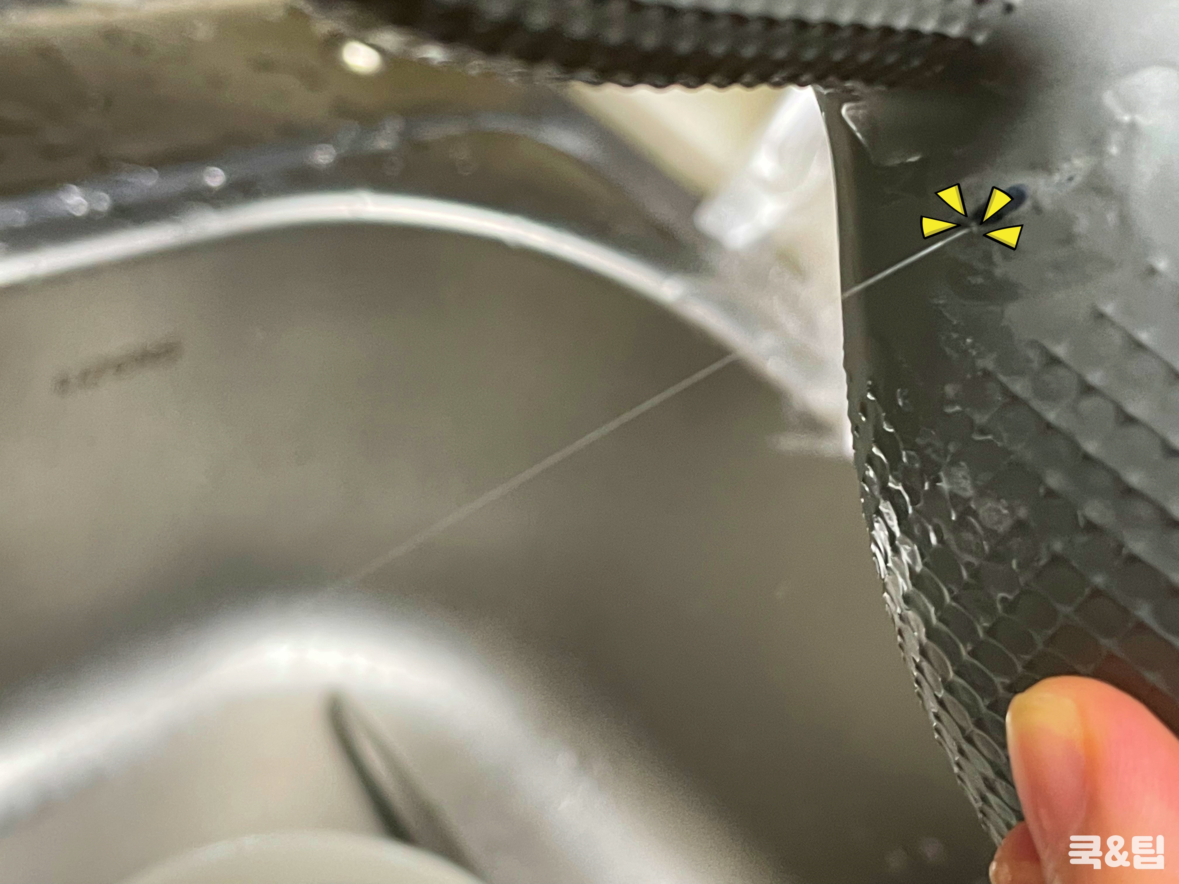 구멍난 부위에 물기를