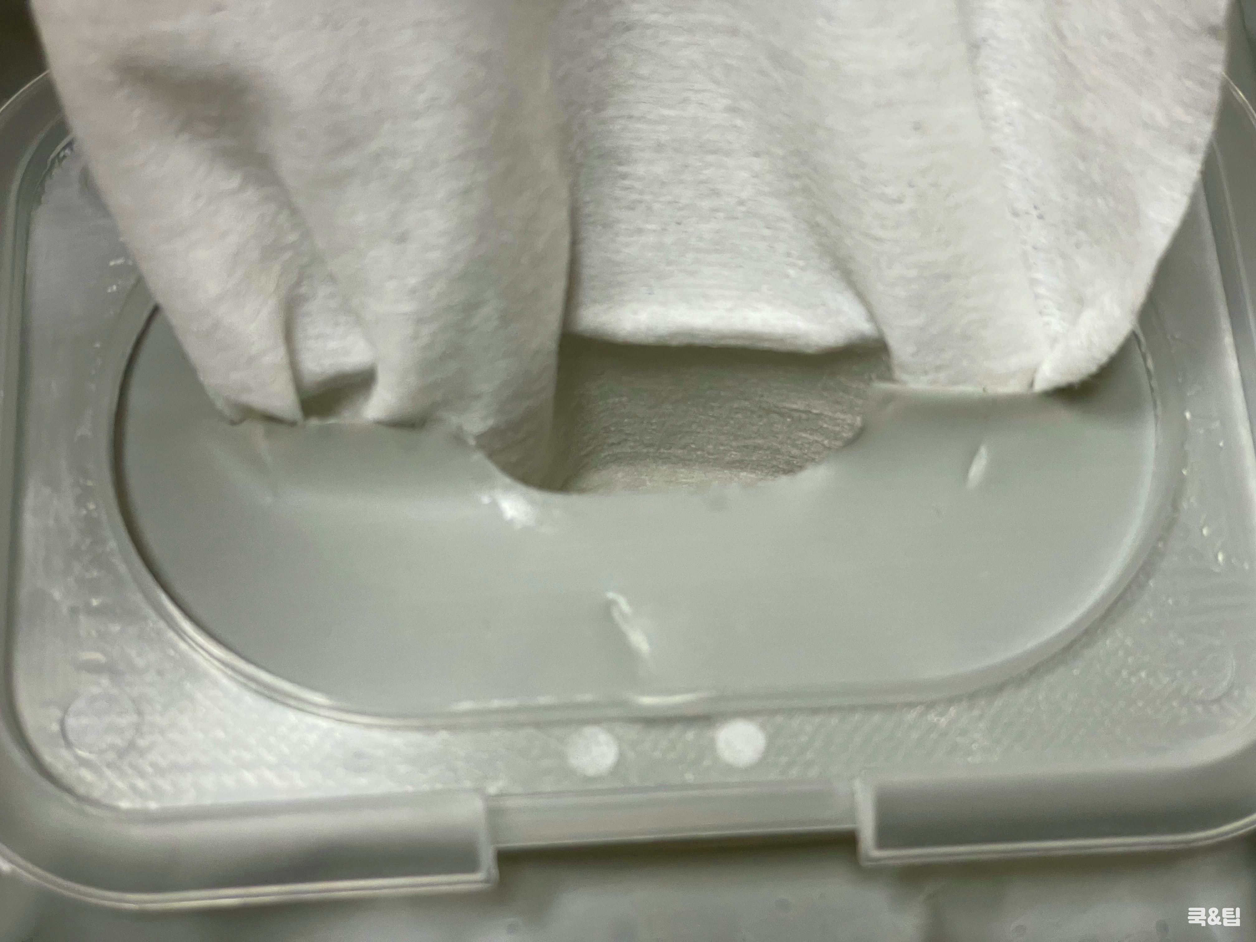 뚜껑을 열고 물티슈의
