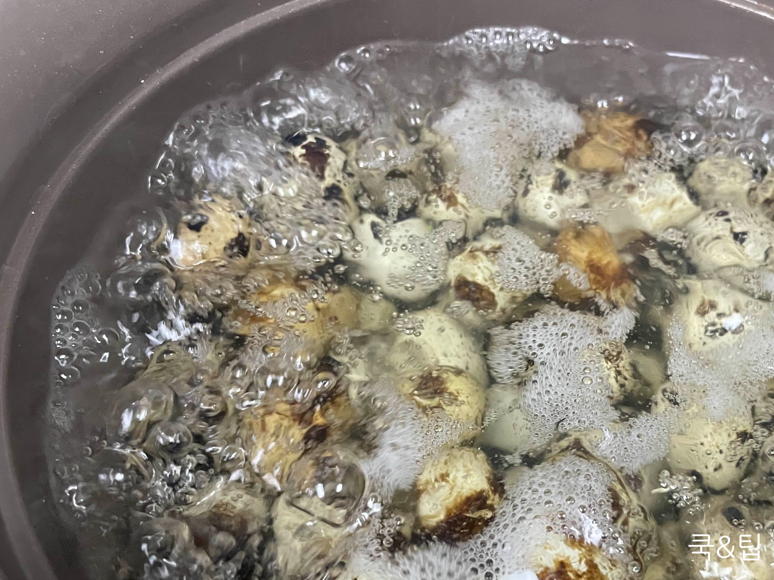 7분 정도 삶아 주시면 메추리알이 익어요