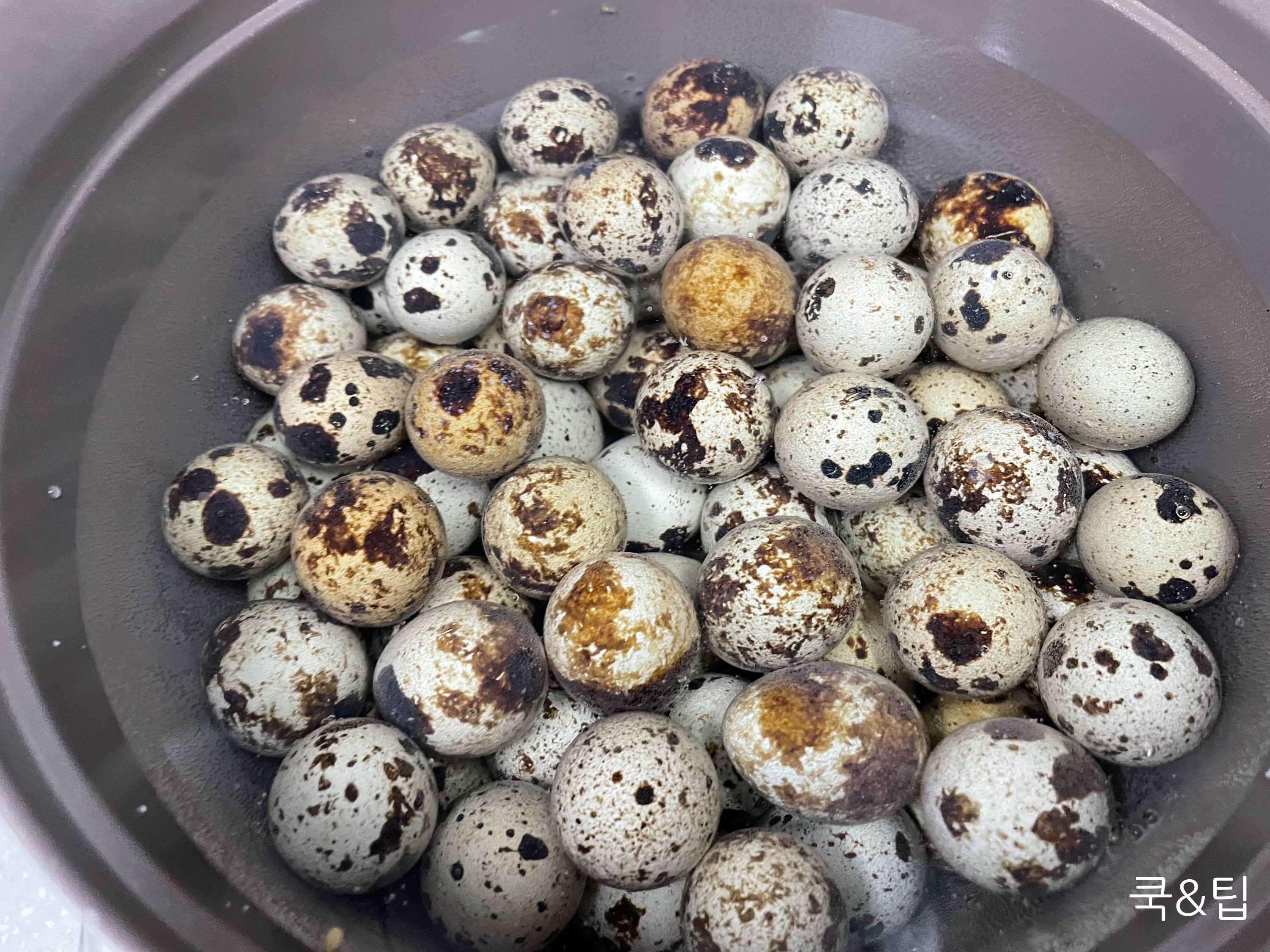 메추리알이 깨지지 않도록 삶아주세요.