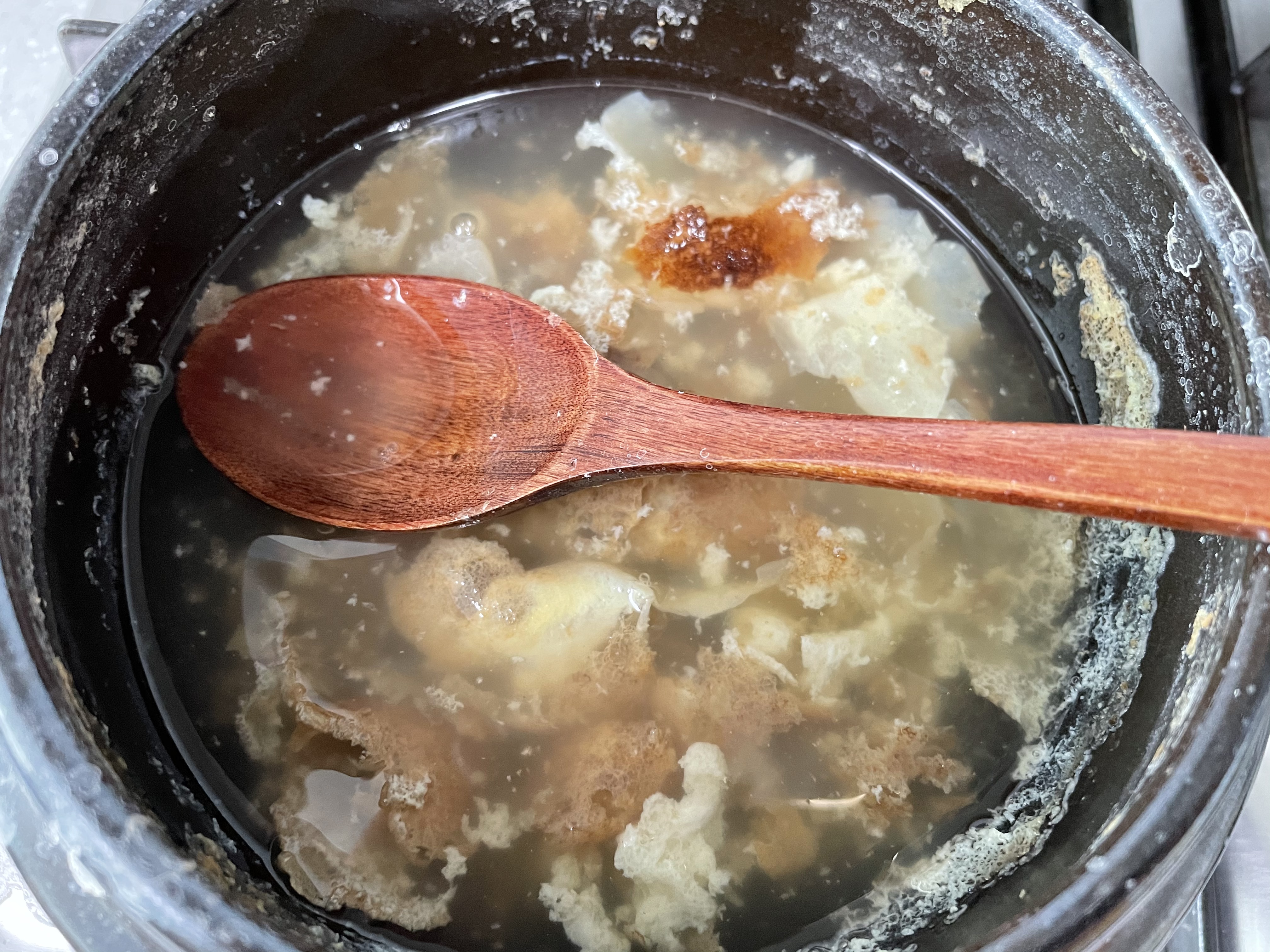 뚝배기 바닥면까지 천천히 긁어보세요.