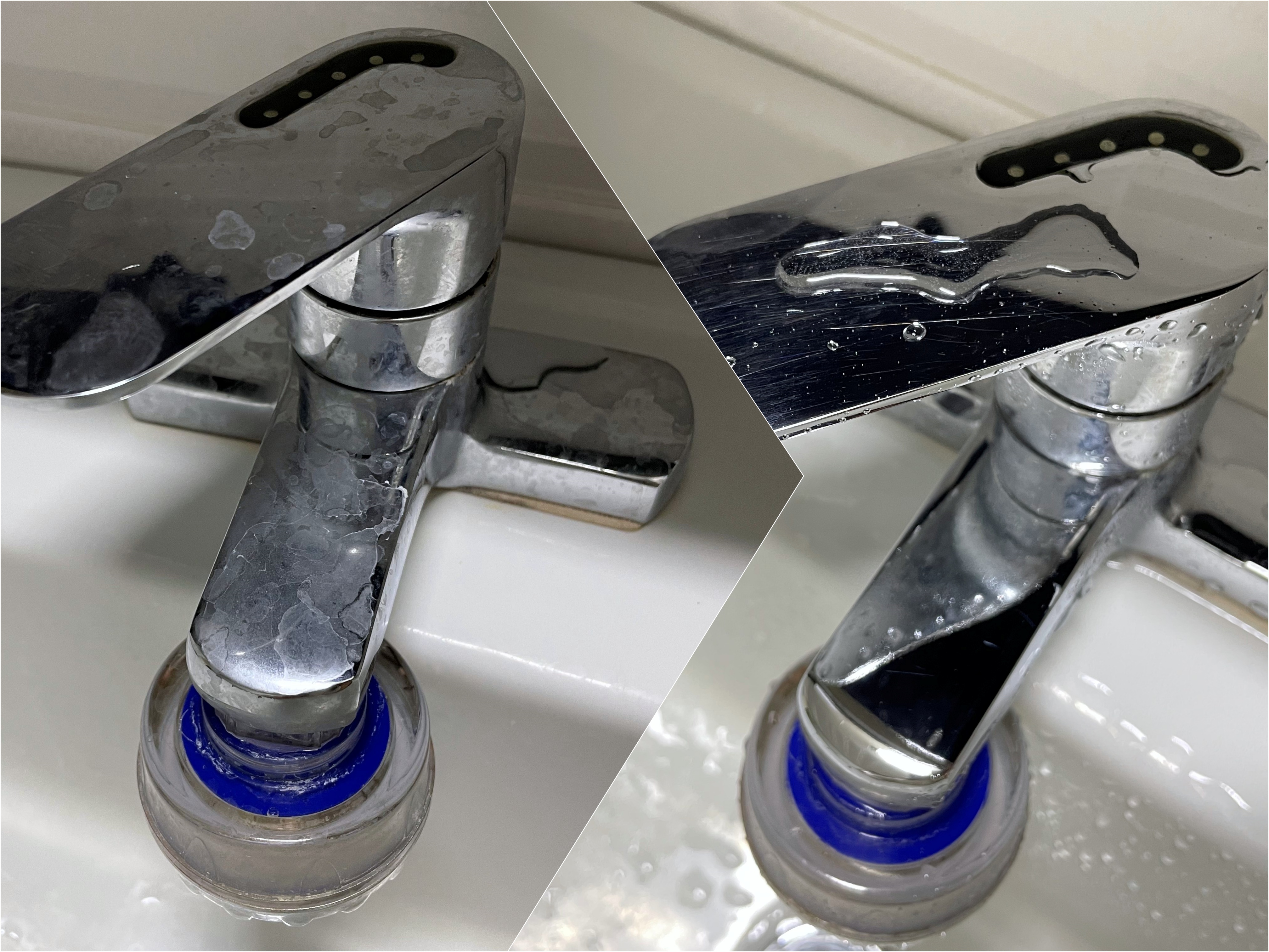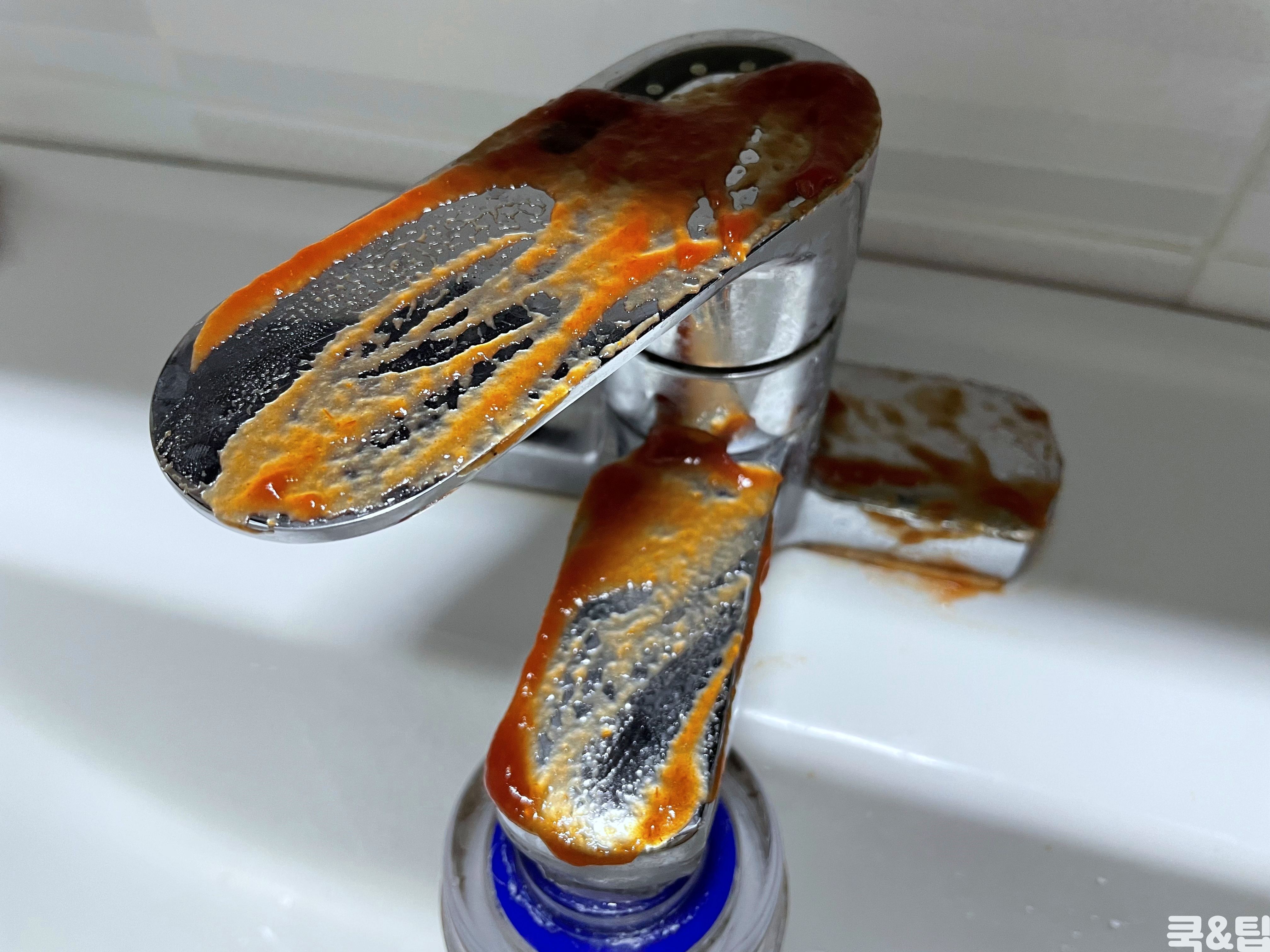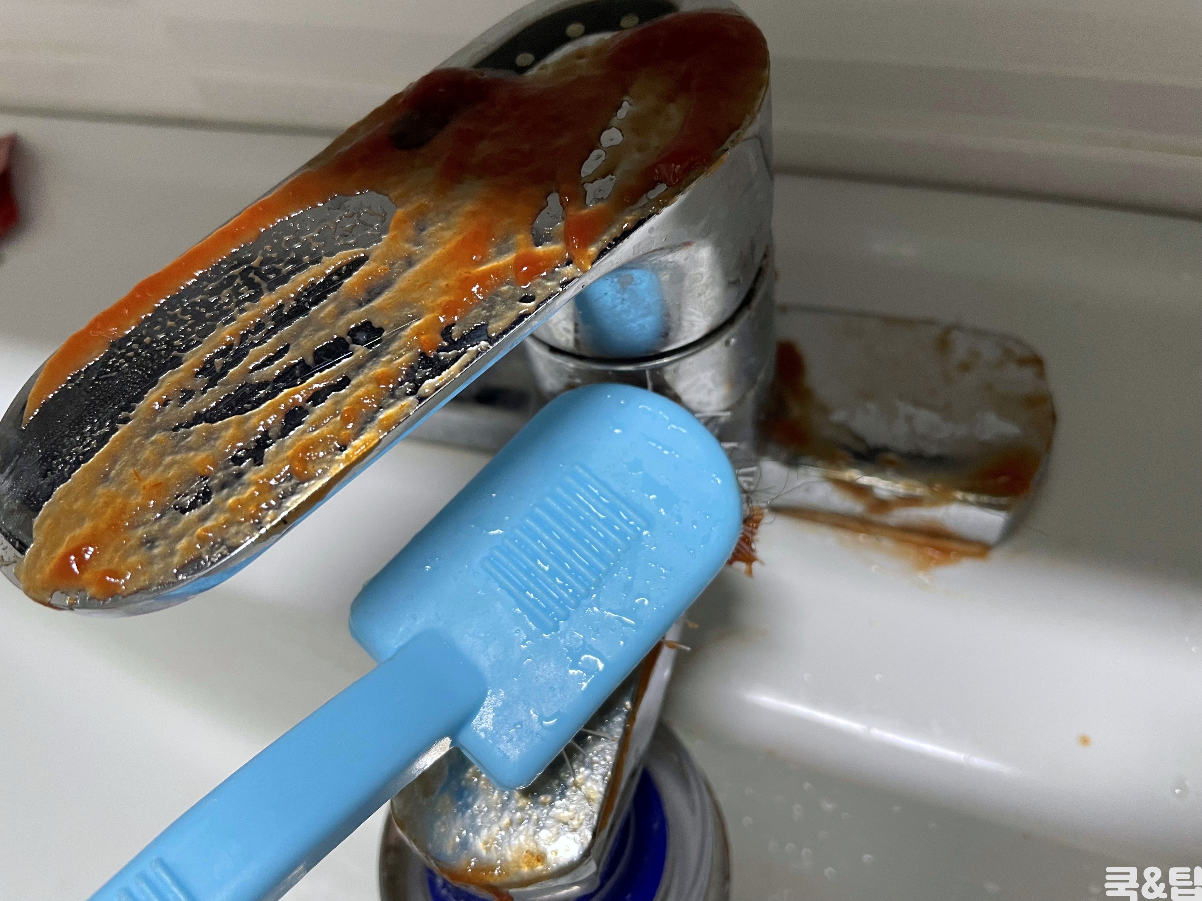솔로 살짝 문질러 준 뒤에 물로 닦아내세요.