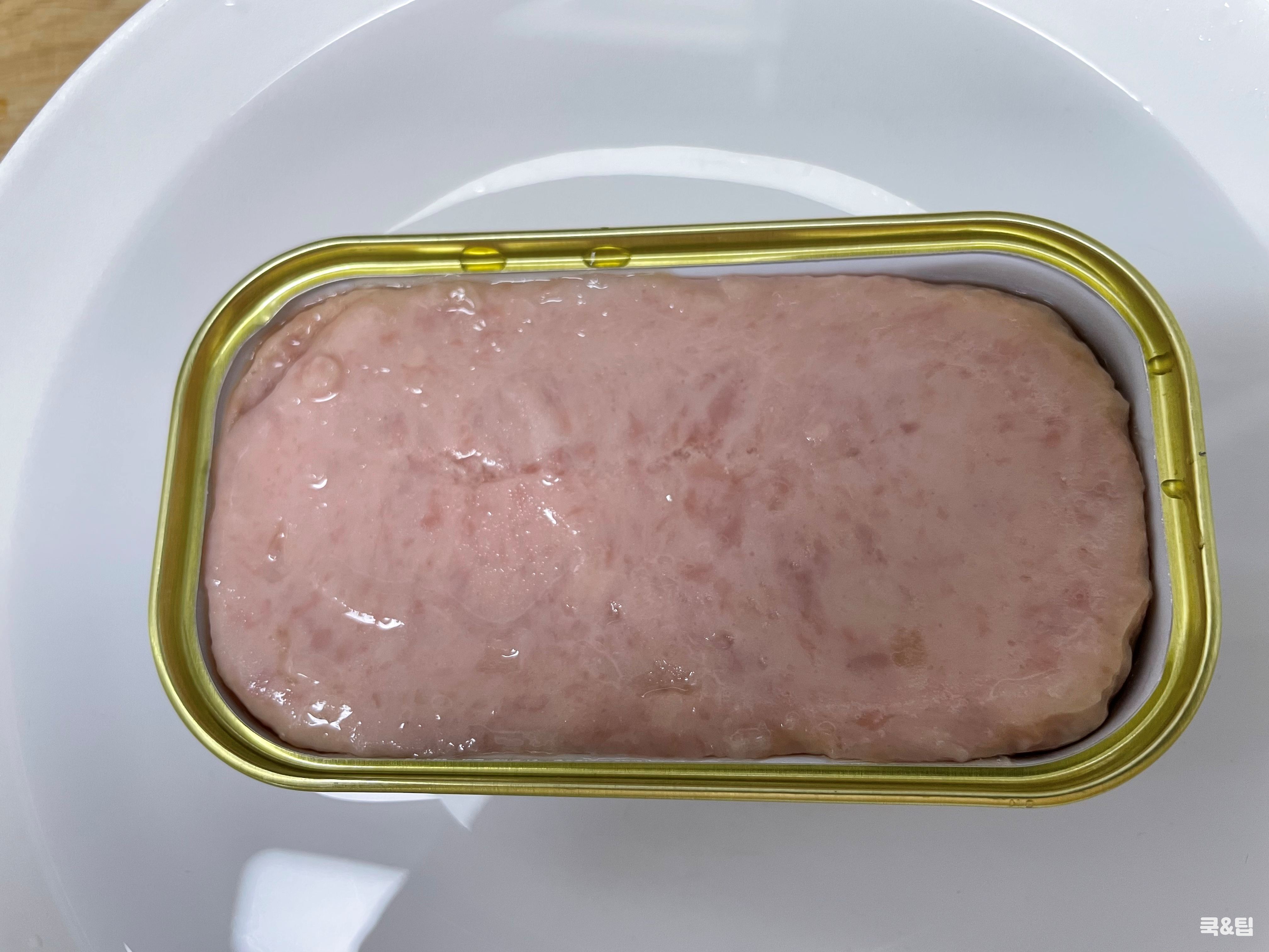 스팸 캔을 1분 정도 담가 주면 끝이에요.