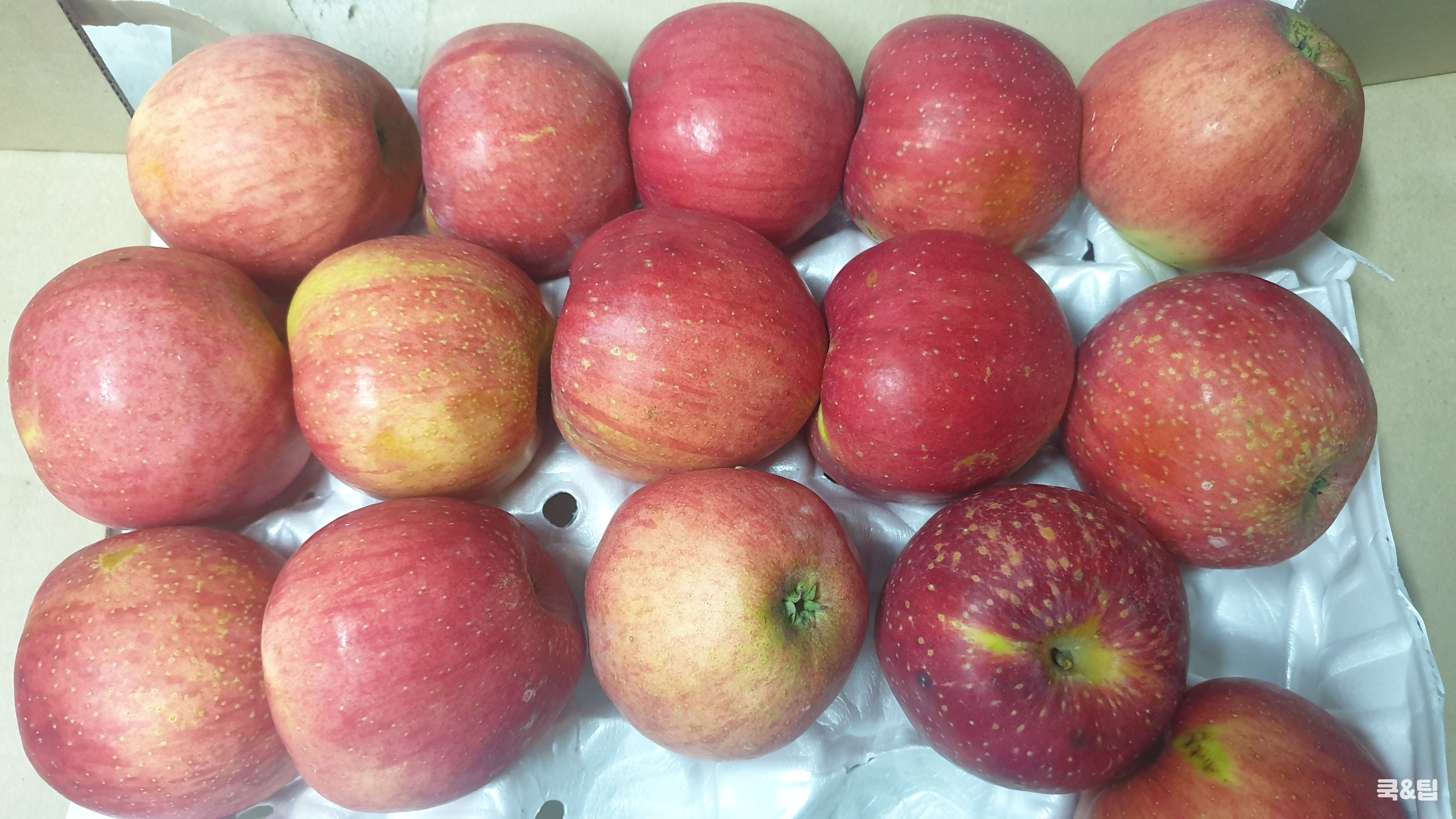 색이 고르게 밝은 것이 좋은 사과예요.
