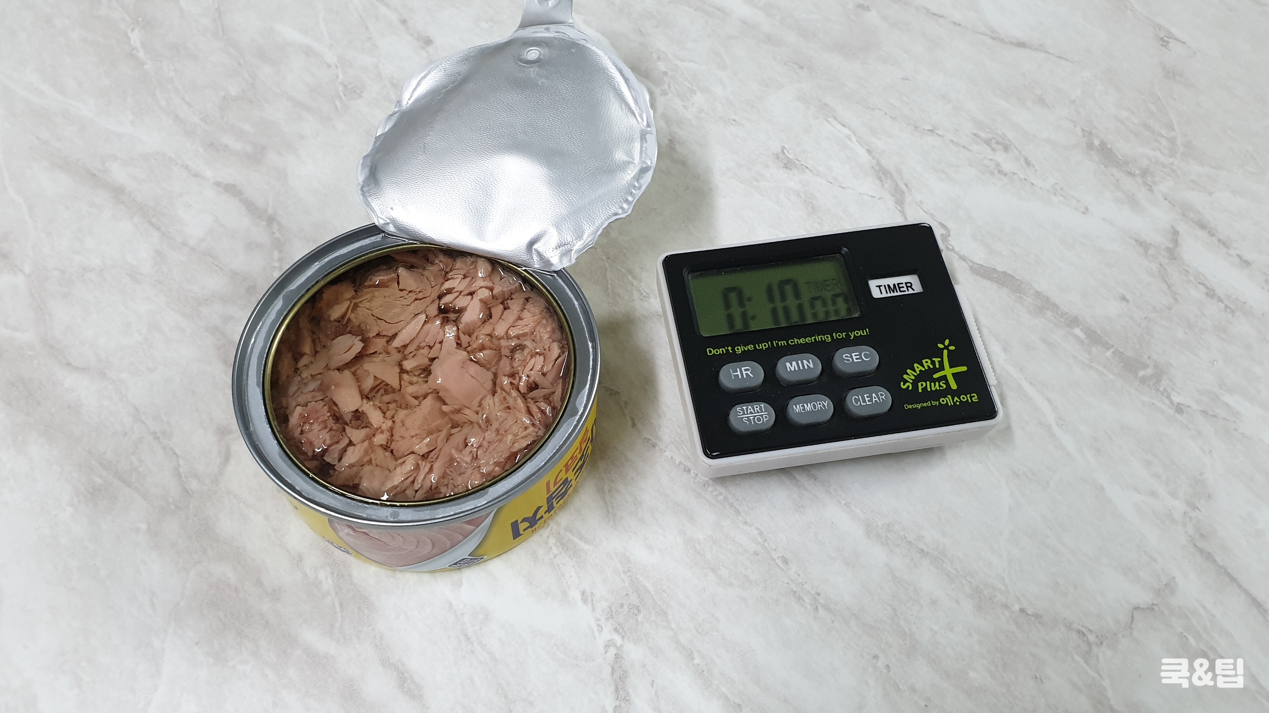캔용기에서 참치를 다른 용기로 옮기세요.
