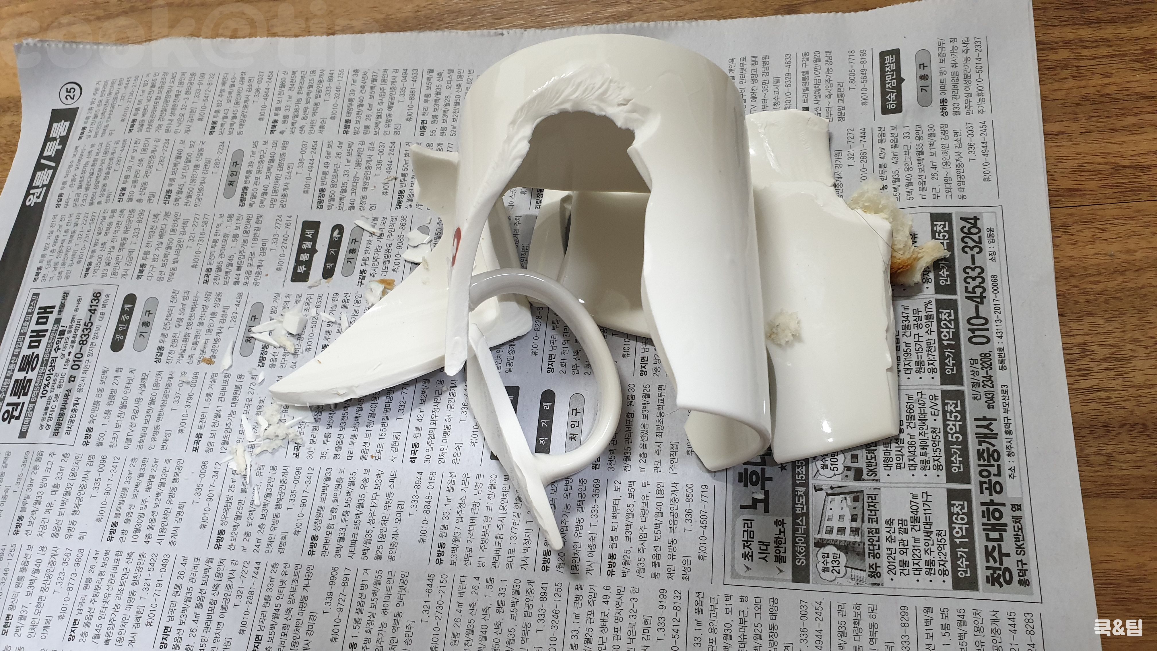 바닥에 떨어진 컵은 산산조각이 나죠!